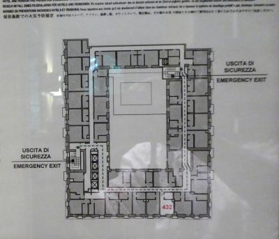 奥行き80mのギャレリアグランデは、市松模様の床とかモノクロの世界で、目の錯覚を起こしそう…。でも一見の価値がありますね。