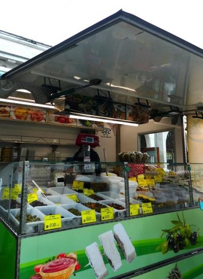 青果中心の屋外マーケットで、1Kg8ユーロのドライトマトを200g、いちじくを2個購入。いちじくはいくらなんだかよくわからず、「これを2つ」と指を指して買ったら1ユーロでした。こういうマーケットだと少量でも買えるのでいいですね。