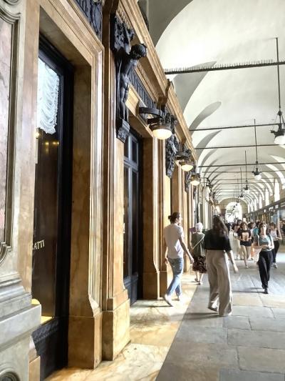 1873年にできたこのギャレリアは富裕層の娯楽のためにつくられたんだそうで、リベルティ(アールヌーボー)で有名なCaffè Baratti & Milanoもあります。