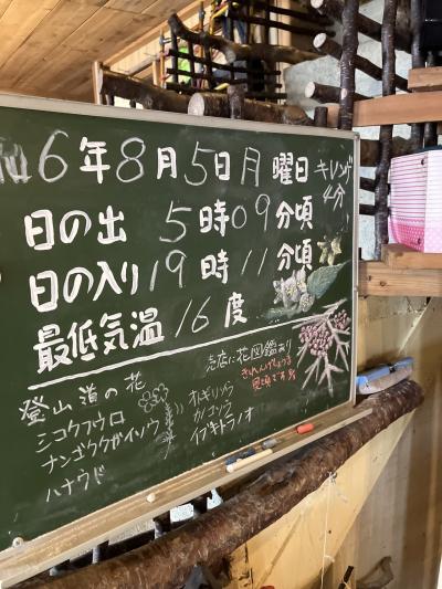 働いているみなさんはとても親切でした。ヒュッテ前にはちょっとした庭があり、キレンゲショウマも見ることができます。- 旅行時期