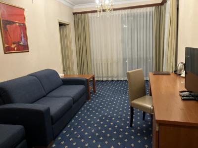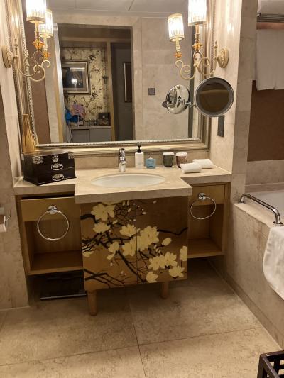 調度品等が豪華ですが、経年劣化がみられるところもありました。客室内は広くてライティングデスクやオットマン付きの椅子等ありました。バスルームの家具の意匠も凝っていました。