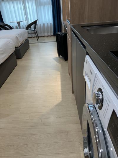 部屋はあまり広くはないですが新しいビルなのでピカピカ。特徴としては室内に洗濯機が付いてること。実際、大変助かりました。