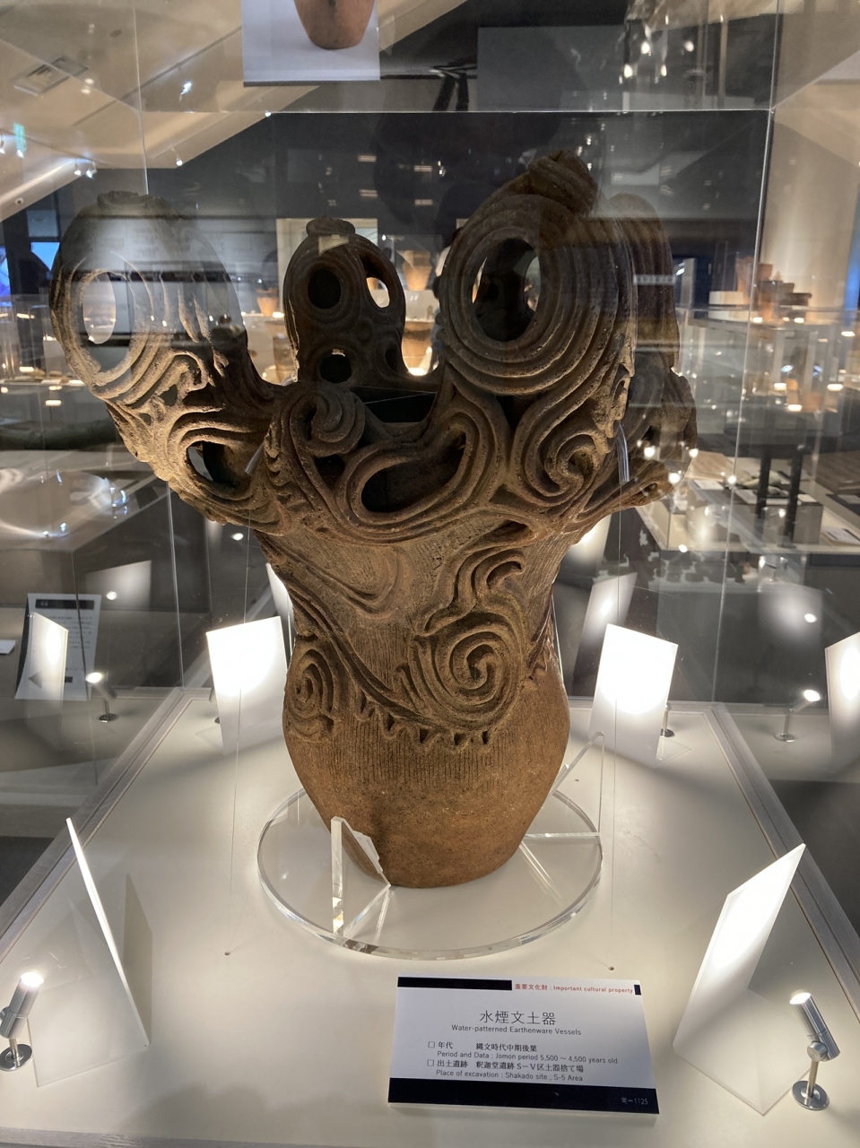 充実した土器、石器、土偶などが展示されていました。素晴らしい「水煙文土器」が見られます。