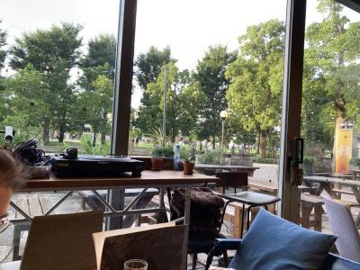 ごちゃごちゃした中野ブロードウェイから来るとなんて広々としたすてきな空間でしょう。窓からは四季の森の緑が楽しめ、オープンテラスもあり高い天井といい空間のゆとりがとても良いです。