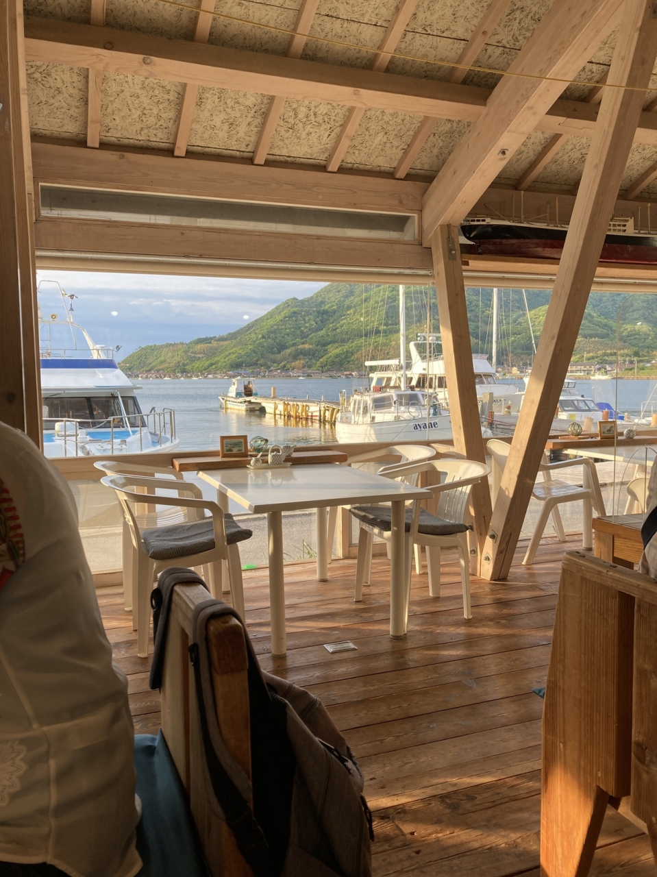 自分が宿泊したクルーザー(笑)を見ながら朝食って、なかなか良いですよね!クルーザーだと大抵は船の中で食事。外から見ることがないですから。