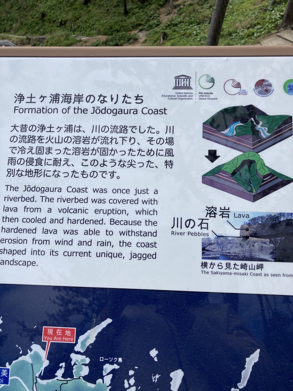 ところが実際は空港(隠岐世界ジオパーク空港)への道すがらで、赤い西郷大橋の近くでした。隠岐島諸島の中では1番大きな隠岐島、人口13200人です。