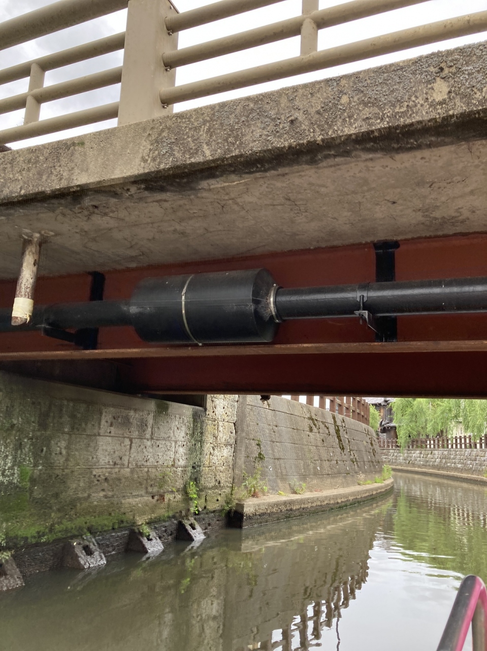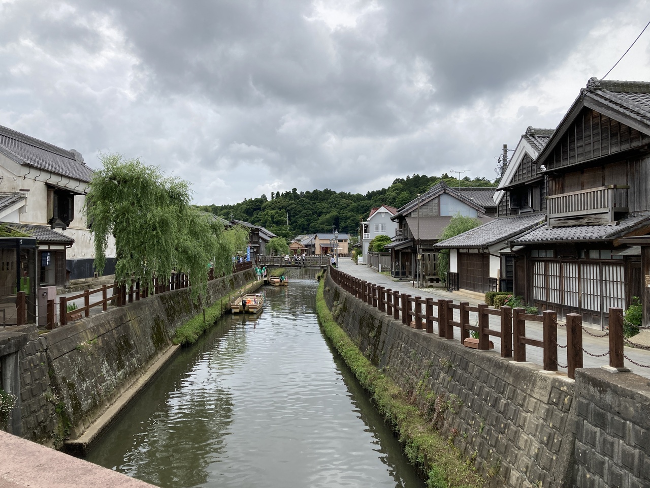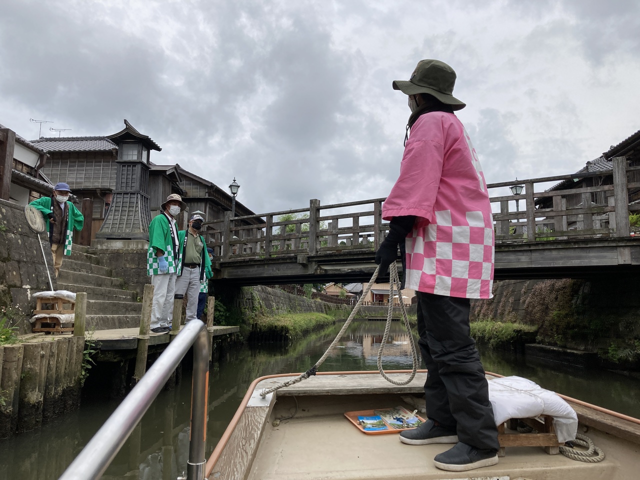 これ、結構気に入りました。小野川は幅が狭く2隻の舟がすれ違うのがやっとくらいに見えますが、3隻分はあります。両脇の保存地区の街並みも近くに見えてこの角度から楽しめるのは希少。