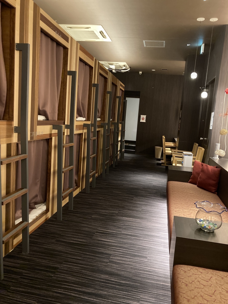 お風呂だけを利用して帰る人もいるようですが、時間的にそのまま宿泊していく人も多いようでした。宿泊は休憩所の他にカプセル式の部屋があります。初めてだし、ゆっくりしたいのでカプセル式にしました。