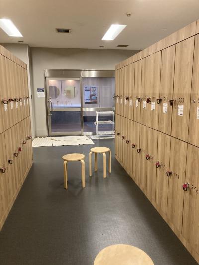 脱衣所はとても広く沢山のロッカーが並んでいます。お風呂いろいろな種類があり、午前1時を過ぎていましたがこれまた結構な利用客がありました。