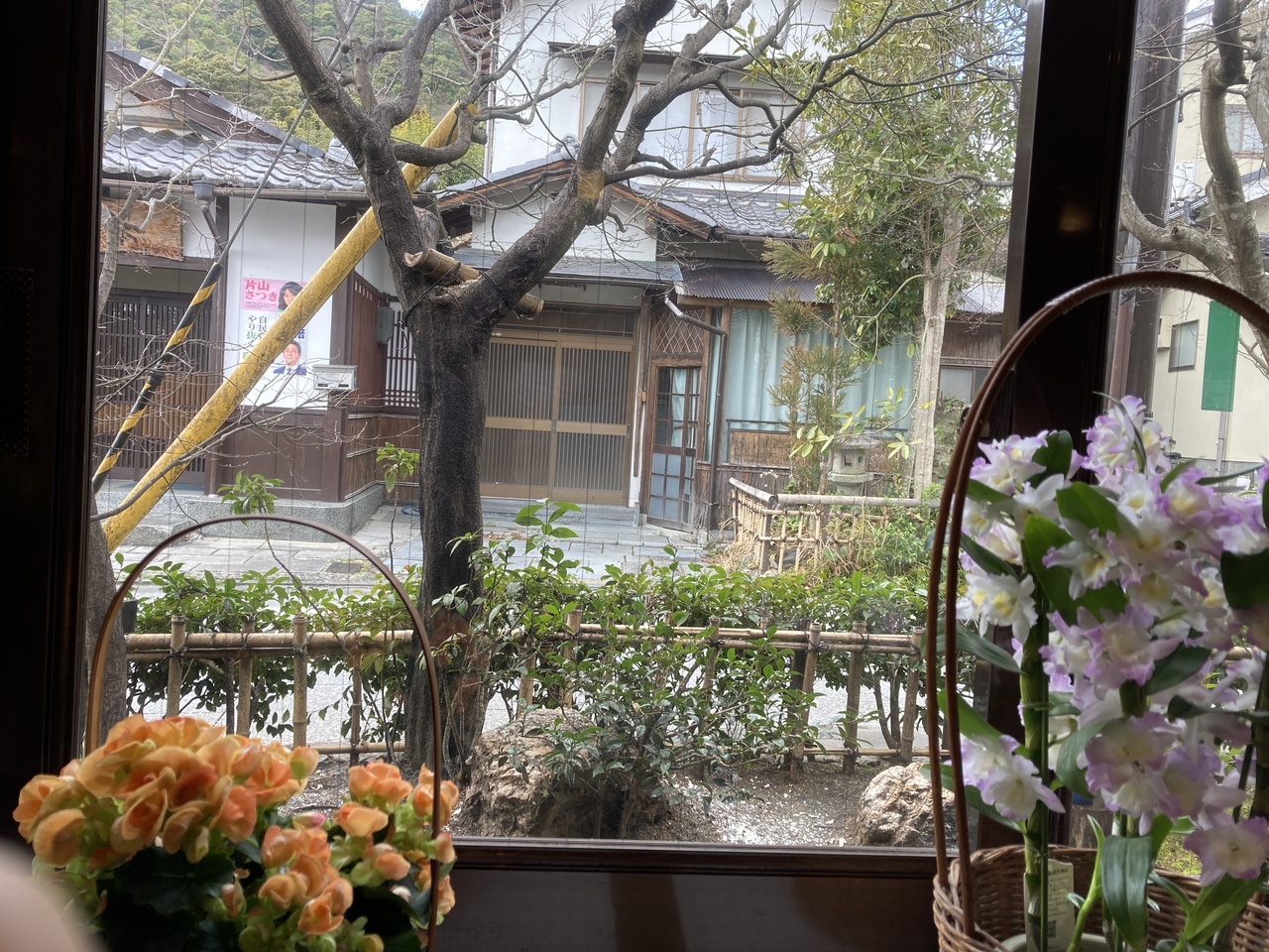 六波羅探題跡のそばにある雰囲気の良いお店です。テラス席は開放感がありますが、奥に静かな空間が広がります。