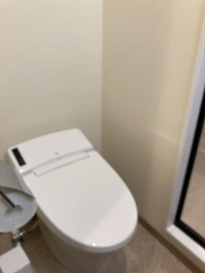 バスルームは洗面台を挟んで独立したトイレと反対側にシャワーがあります。新築なのでピッカピカです。