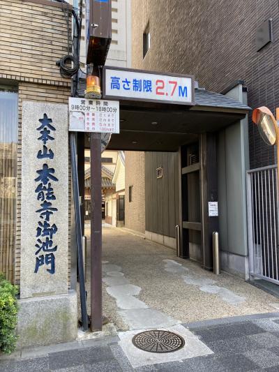 何気に散歩しているとGoogleマップが本能寺と示していて、京都市役所からは見えないのですが、御池通りの建物を見ると「ホテル本能寺」、「本能寺文化会館」と。寺町通りを入って行くと大きな総門(有形文化財)がありました。法華宗大本山です。