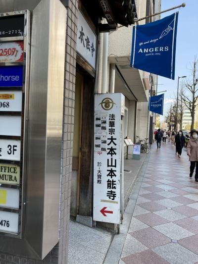 まさかあの本能寺が京都市役所前にあるとは知りませんでした。皆様ご存知の「本能寺の変」の後、本応寺が、秀吉の都市計画で移転し、本能寺として織田信長(1534~1582)を偲んだお寺です。実際の本能寺は焼け落ちその跡地の碑まで徒歩30分ほどらしいです。
