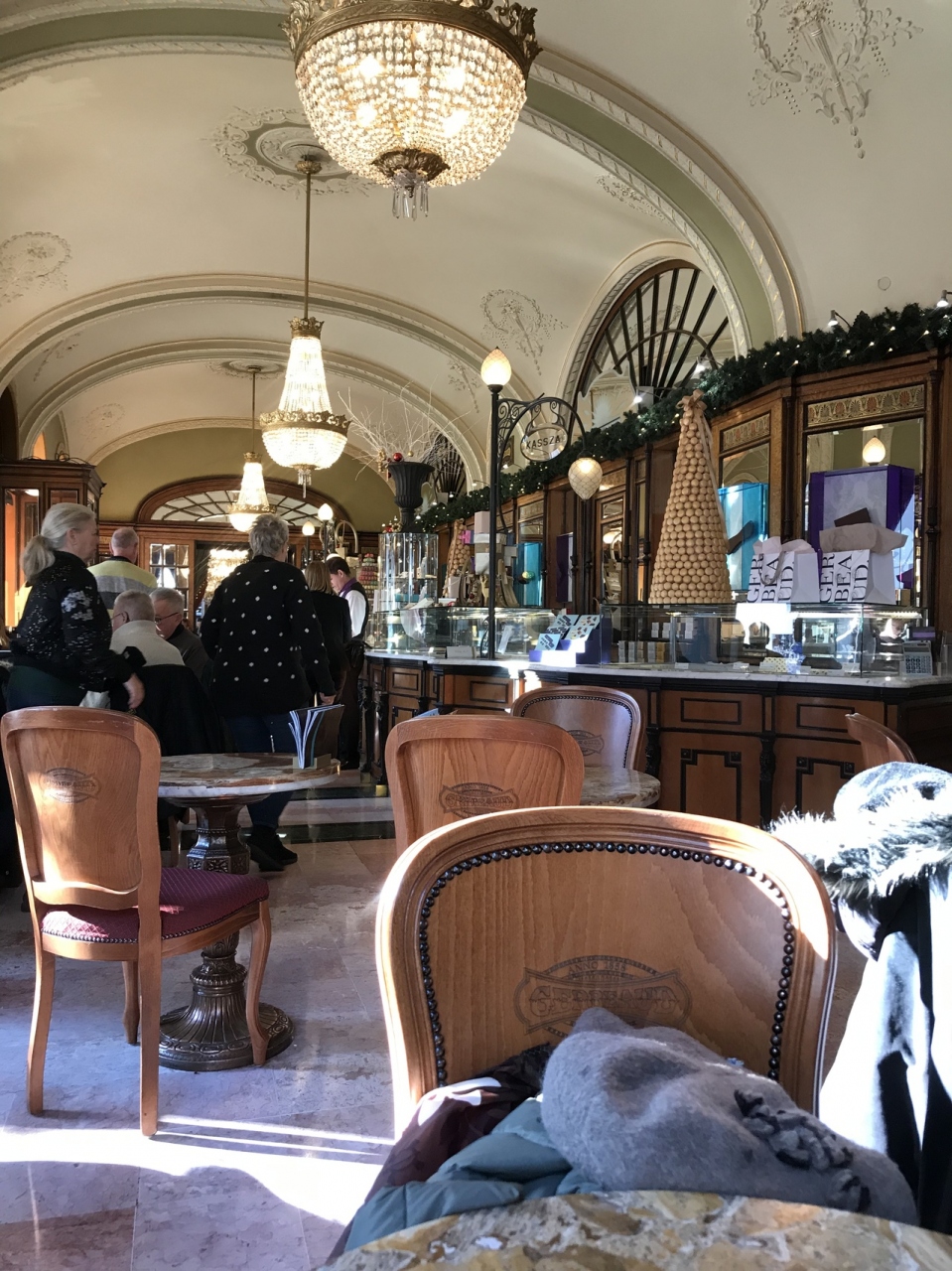 まず高い、美しく弧を描く天井とシャンデリア、それに沢山ある窓から光が入り店内が明るいのがよかったです。テーブルとテーブルの間隔はかなり詰め込まれた感がありますが殆どが観光客なので座ってしまえば問題はないです。窓からそぞろ歩く人々を見ながら暖かい室内で優雅にお茶をする事ができます。