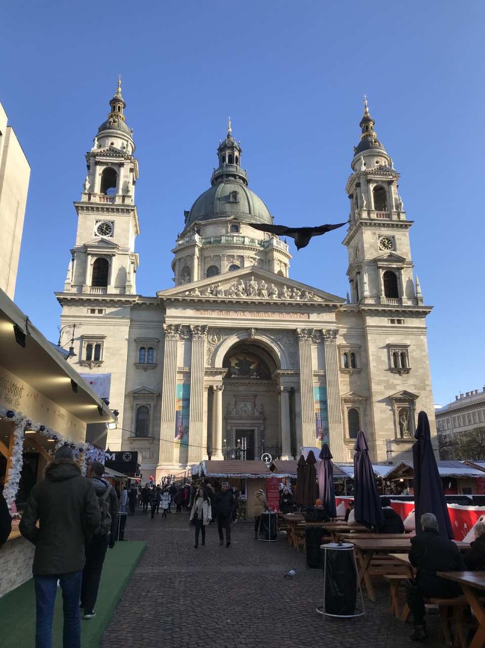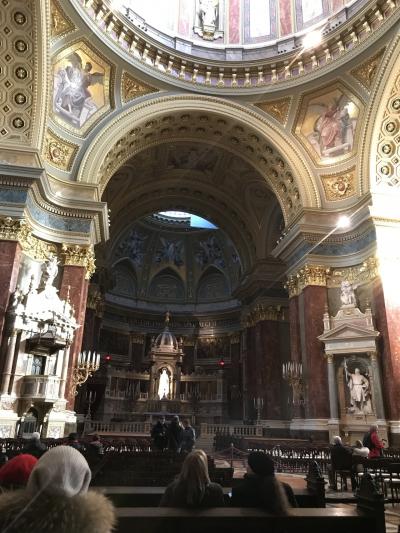 ブダペストの街の美しさは、19世紀の建造物が保存され、または復元された街並にあります。正面に二つの鐘楼を持つこの大聖堂はブダペストで国会議事堂と同じくらい高い建物であり、96メートルあります。着工は1851年ですが完成は1905年と年数がかかっているのは完成後の崩落事故によるところが大きいとのこと。第二次大戦後の修復は今も続けられています。現在ではエレベーターまたは階段でドームに登り、ブダペストの街を360度楽しむことができます。
