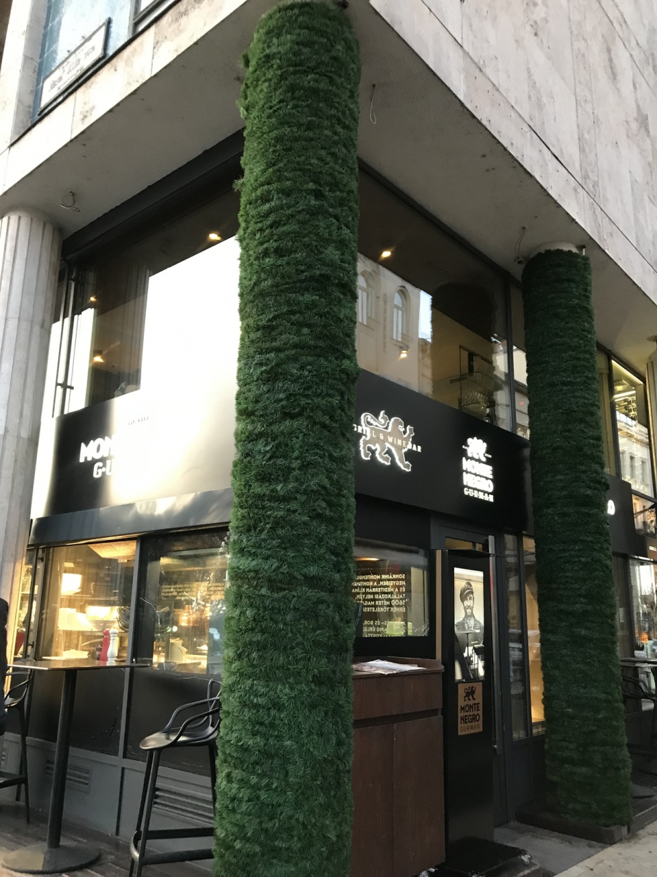 随一の繁華街、ヴァーツィ通りの始まりのヴルシュマルティ広場の向かいにあります。入り口は二つあり、カフェの入り口とレストランの入り口らしく、繁忙期には別々に利用されるのかもしれません。丁度ランチ前で空いていたので並ばずに入る事ができました。