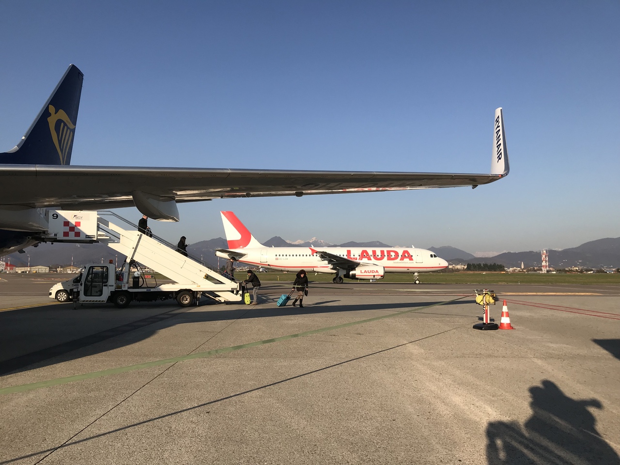ベルガモへの直通バスがありそこから電車で各地へもアクセスできますが、ミラノへ行くなら直行バスが30分に一本はありますので便利です。搭乗者の殆どは手荷物で預け荷物の人が少なかったです。まさしく降りたら直ぐに移動開始という便利さと手軽さが魅力でした。ちなみに預け荷物もすぐに出てきたので、全く問題なしでした。