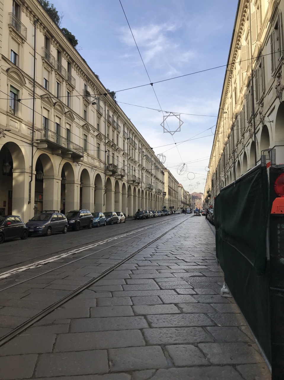 長距離列車でポルタ・ヌォーヴァ駅に着いたら、その目の前の通り(エマヌエル通りとビットリオ通りの出発点ですが)を渡ると、カルロ・フェッリーチェ広場があります。そこをまっすぐ王宮のある、カステッロ広場までの通りをローマ通りといいます。