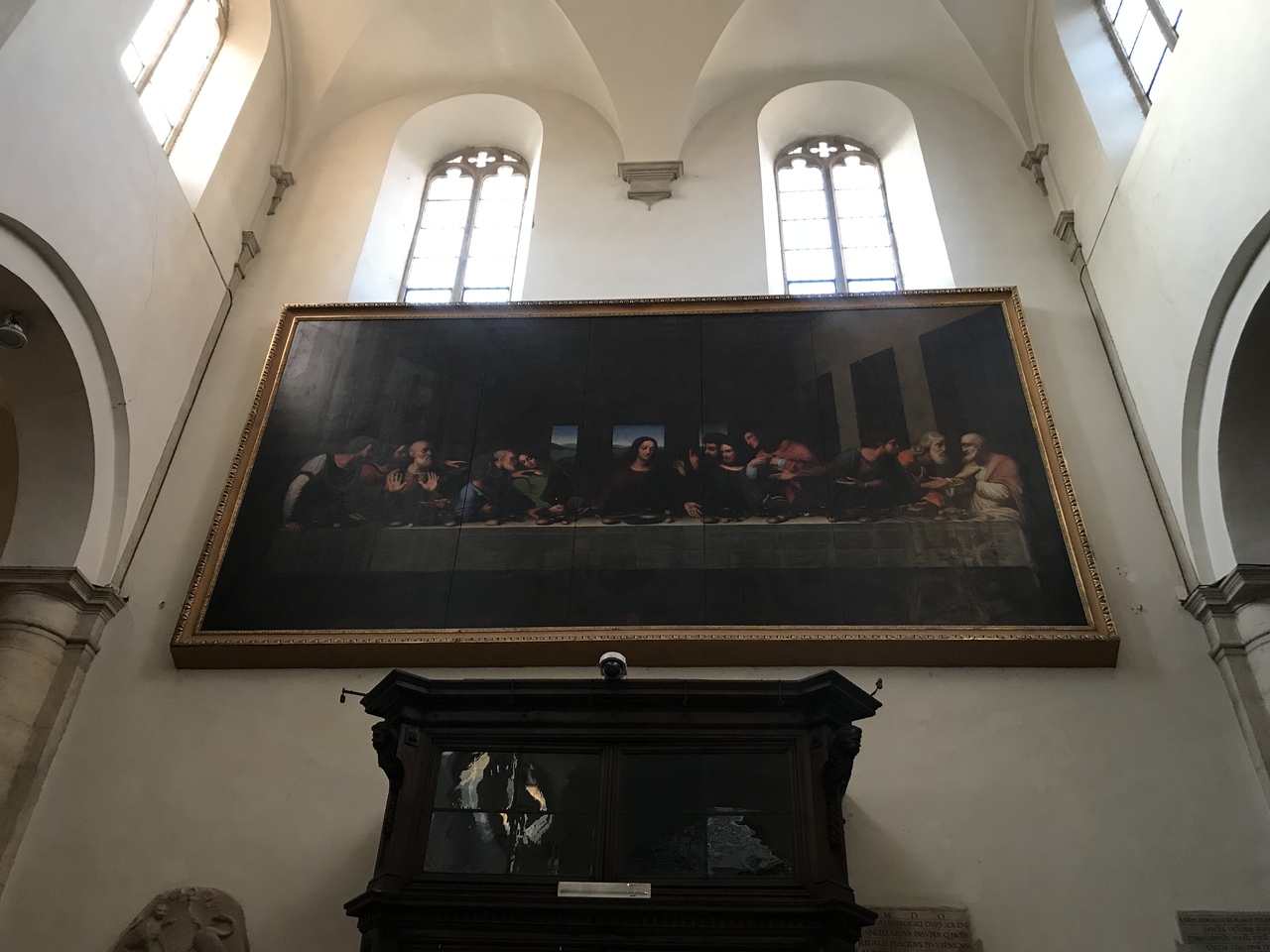 入るとすぐ上にはレオナルド・ダ・ビンチの最後の晩餐の複製が掛かっています。
