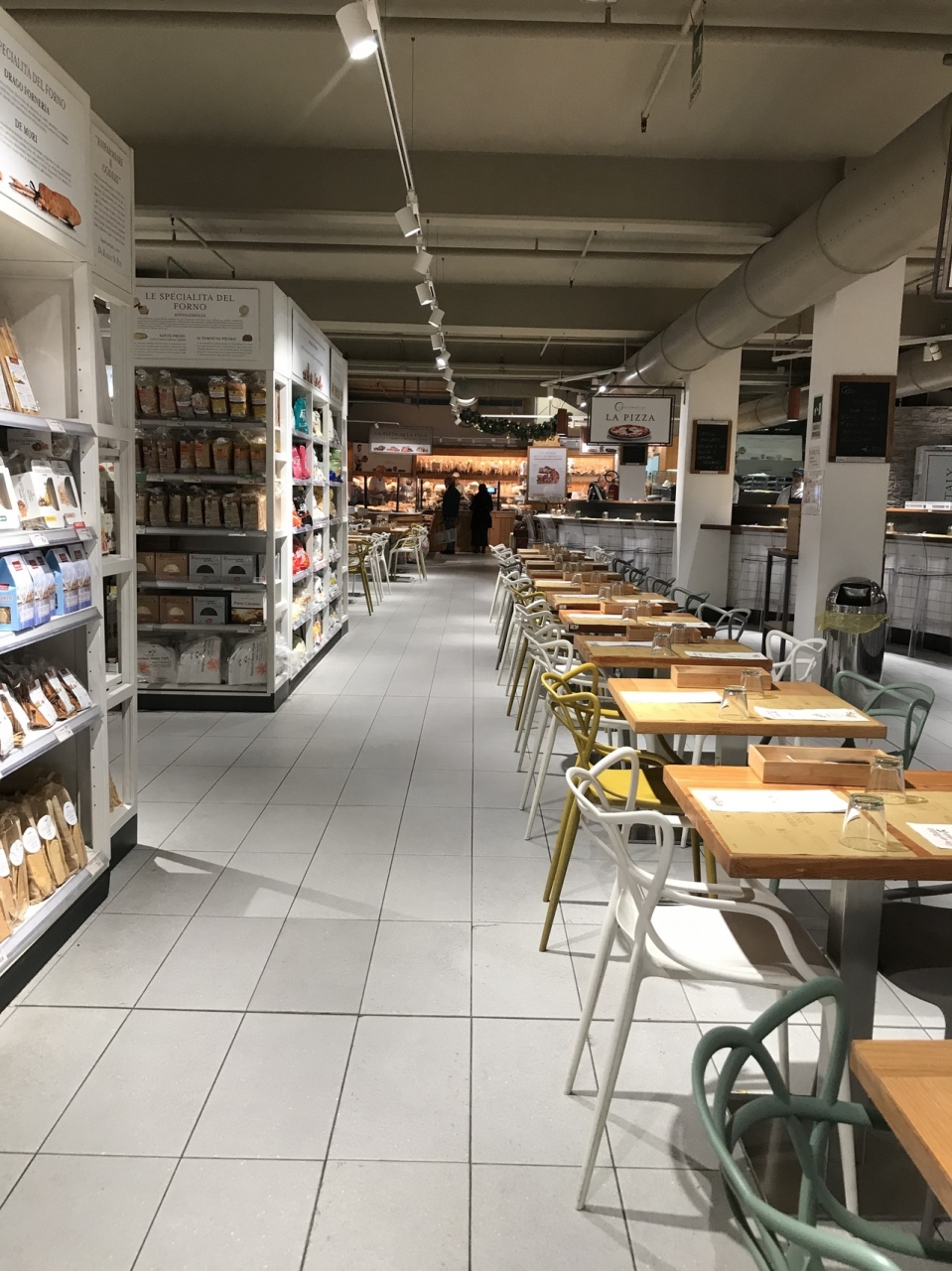 またベーカリーコーナーのイートインでは遅めの朝食を食べている人もいました。残念ながら開店時間だと殆どのイートインできる店が準備中でした。日本のイートインと異なり、こちらではパスタ専門店をはじめ新鮮な素材で専門店の味を楽しめるイートインで、価格はレストランよりずっと安いということでとても人気です。