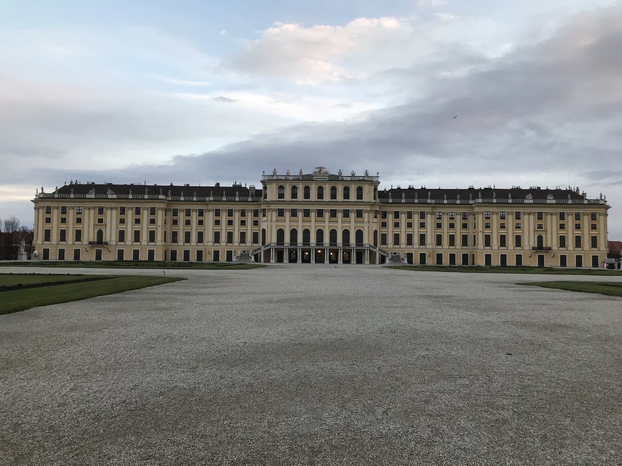 17世紀、皇帝レオポルト1世がベルサイユ宮殿をしのぐ宮殿造りを命じたが、財政難で縮小された。1743年、マリア・テレジアが大改築を命じ今日のような姿となった。