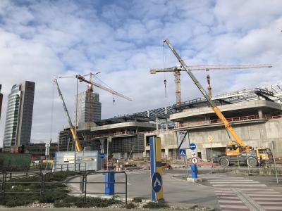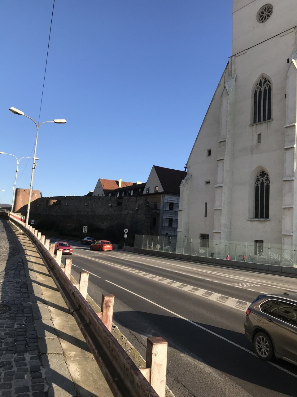 かつて城壁に囲まれていたブラチスラヴァ。旧市街にはまだまだ古い建物が残っていますが、城壁はほんのわずか残されているだけ。急激に近代化が進むこの街は空前の建築ラッシュと言った風情です。