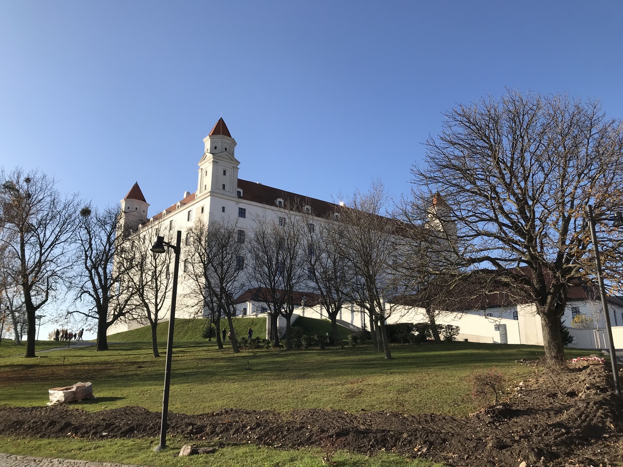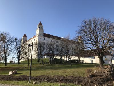 ドナウ川沿いにスロバキア共和国の首都ブラチスラヴァに近づくと高い丘の上に赤い屋根のお城が見えます。
