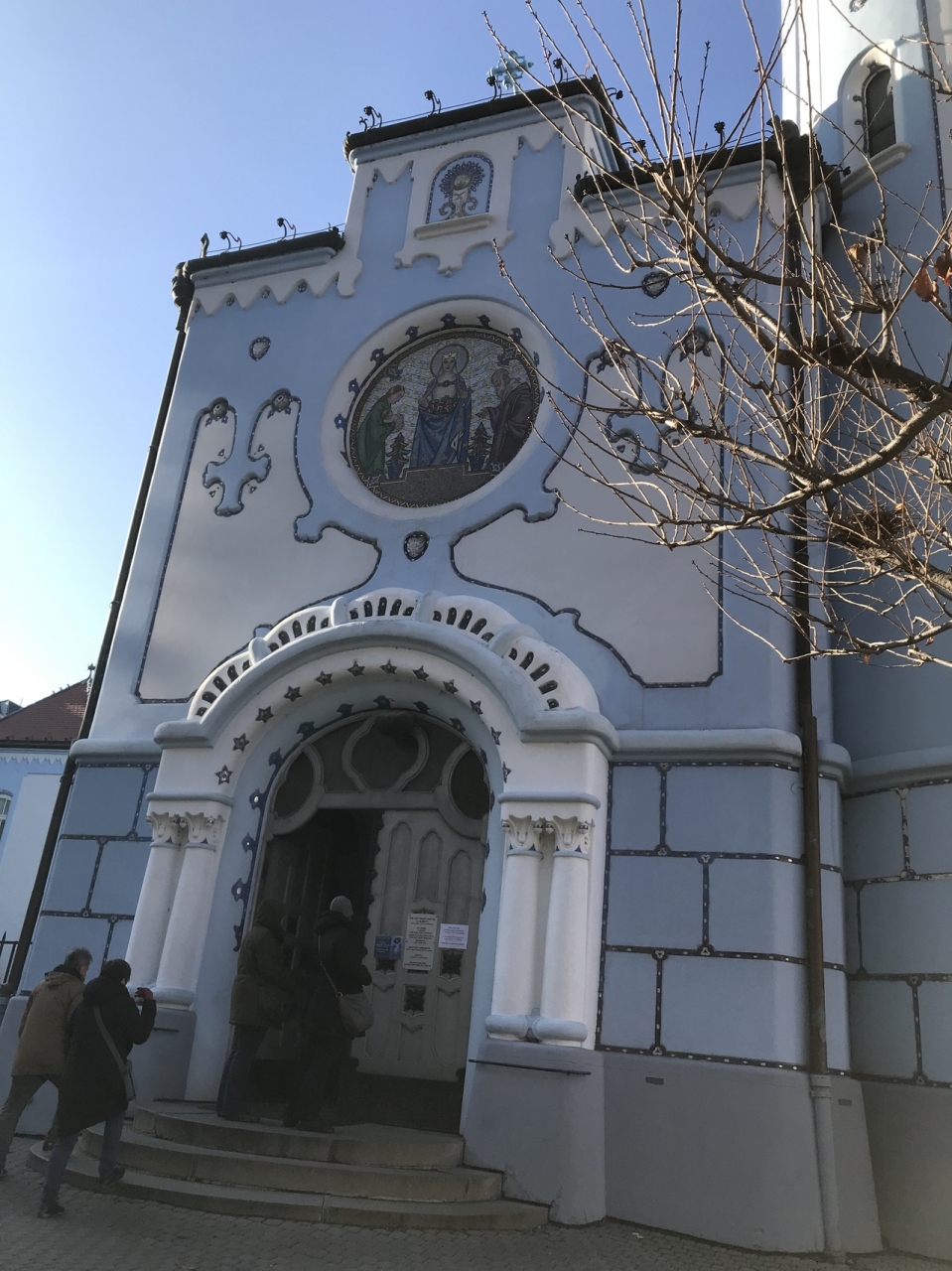 1909年から4年かけてLechnerの設計で造られた比較的新しいカトリック教会で、ハンガリアン・アールヌーボーと言われる濃淡のあるブルーが眼を惹きます。塔の高さは36.8メートル。教会の一階部分の床は楕円形をしているそうです。