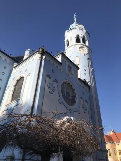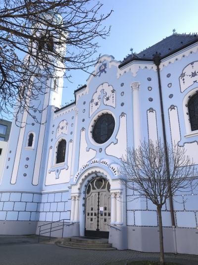 スロバキア共和国の首都ブラチスラヴァは人口45万人。その東部、ちょうど旧市街への入り口辺り、新旧住宅街のビルが建つ中にその青い教会はあります。突然そこだけ美しい青い色が浮かぶような教会です。