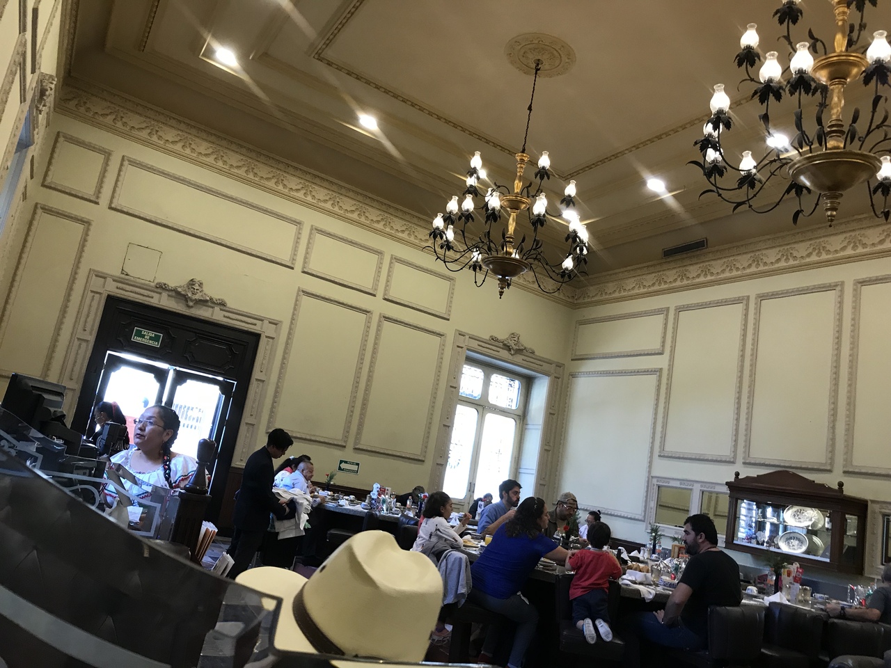 そのせいか気取りがなく、ウェートレスさんは民族衣装っぽい服装で、それでいて古い建物らしく天井がとても高いのです。さらに曲線を描くカウンターがあり、現地の人がリラックスして食事などを楽しんでいます。