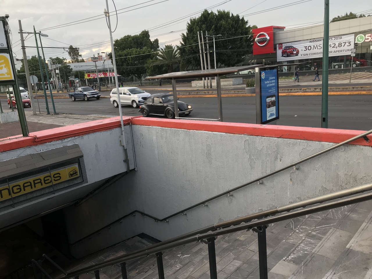 ターミナル2から市内へ行くには、一駅だけバスに乗ります。バスはN$8(約42円)で、バスの運転手さんからチケットを購入します。現金のみです。下車駅は「アンガレス」。ほとんどの人がここで降ります。バス停は地下鉄アンガレス駅の入り口にあります。