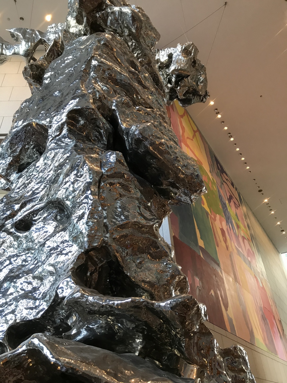 汐留だと地下二階が通路なのですが、センタービルに入って、目に付いたエレベーターを登って行くと、銀色のなんなのか?っていう感じのスタチューみたいのが、あります。
