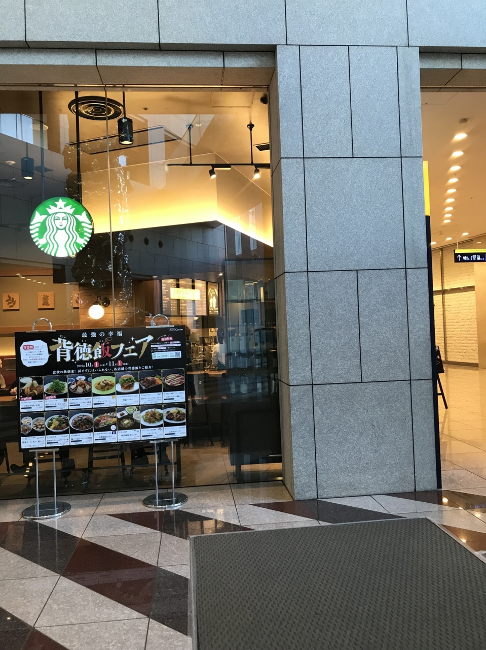 これは何なのか、時間がなくて確認できなかったのですが、そこは、一階。その前にあるのがスタバシティセンター店です。