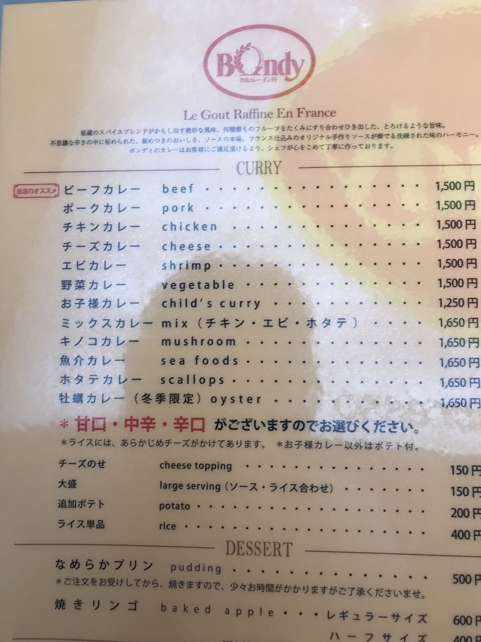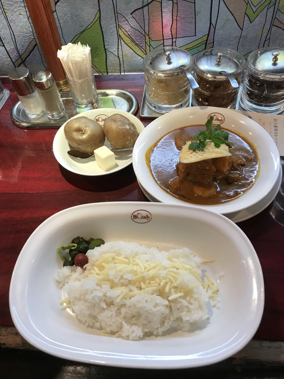 カレーは甘さ、辛さのハーモニーが流石に素晴らしかったです。さらに、レーズン、らっきょうなどの付け合わせも自由に取ることができます。