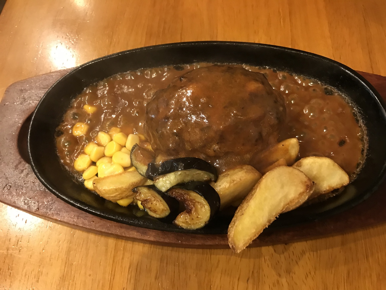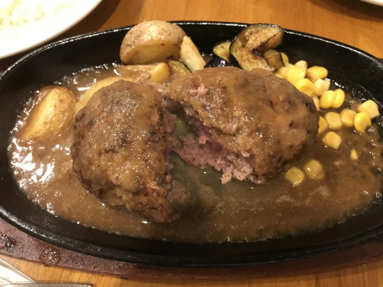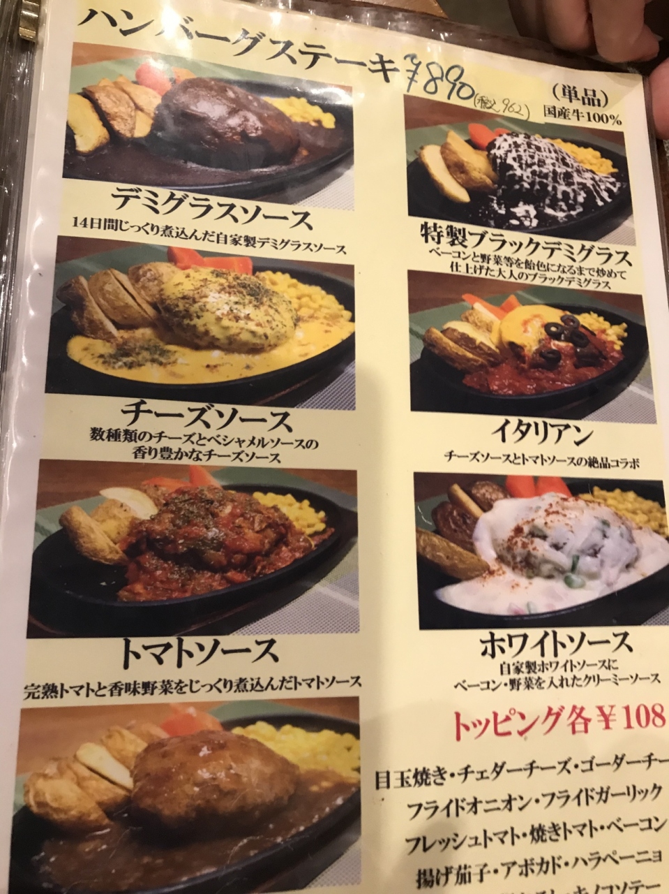 名物ハンバーグは、肉汁たっぷりでホワホワと柔らかく、国産牛100パーセント!!ソースは7種類から選ぶことができます。