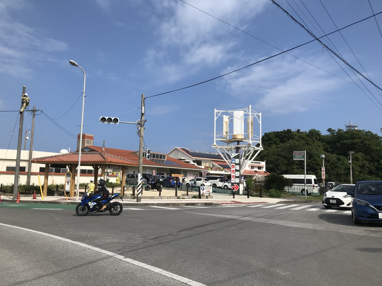 古宇利島で最も目立つのはオーシャンタワーという白いタワーのあるホテルです。おそらくこちらのカフェに入るのが割と楽に駐車出来るようです。