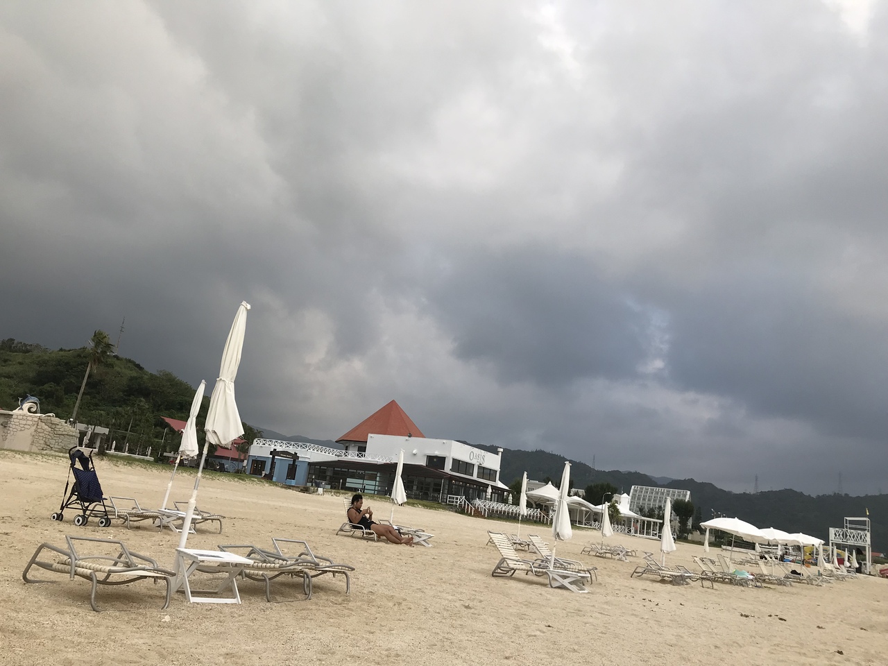 残念ながら曇っていてサンセットはみられなかった。プライベートビーチは広くはないが、その白砂のビーチと、コバルトブルーの海の色と相まって、とても美しい。- 旅行時期