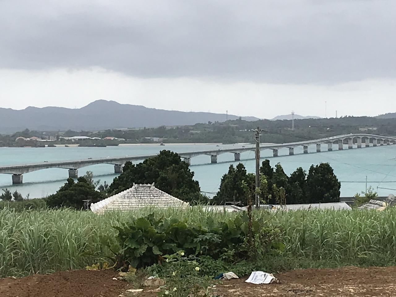 国頭郡今帰仁村の古宇利島と名護市屋我地島を結んでいる美しい橋です。屋我地島も結構大きな島ですが、開発は進んでいなくて畑や雑種地が多いように見えました。ところが古宇利島へ向かう道は殆どがレンタカーです。観光客が古宇利大橋を通って古宇利島へ押し寄せている感じがします。