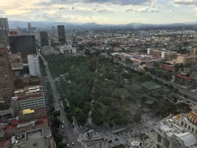エレベーターで一気に37階まで登ることができます。そこからの景色は天気さえよければ絶景で、メキシコ盆地を360度見渡すことができます。