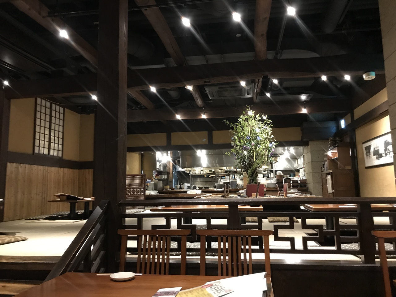 銀座松屋の裏手にあり、銀座にしては価格が安い。さらに、堀座敷席や宴会用個室などがあるが、落ち着く和風のインテリア。木をふんだんに使っていて、ちょっと異空間。