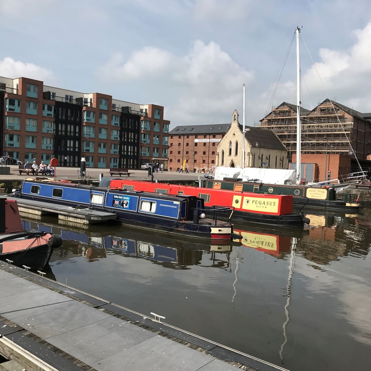 ドックには、ナローボートがたくさん係留され、中にはカフェなどに改装されているものもあり、面白い。- 旅行時期