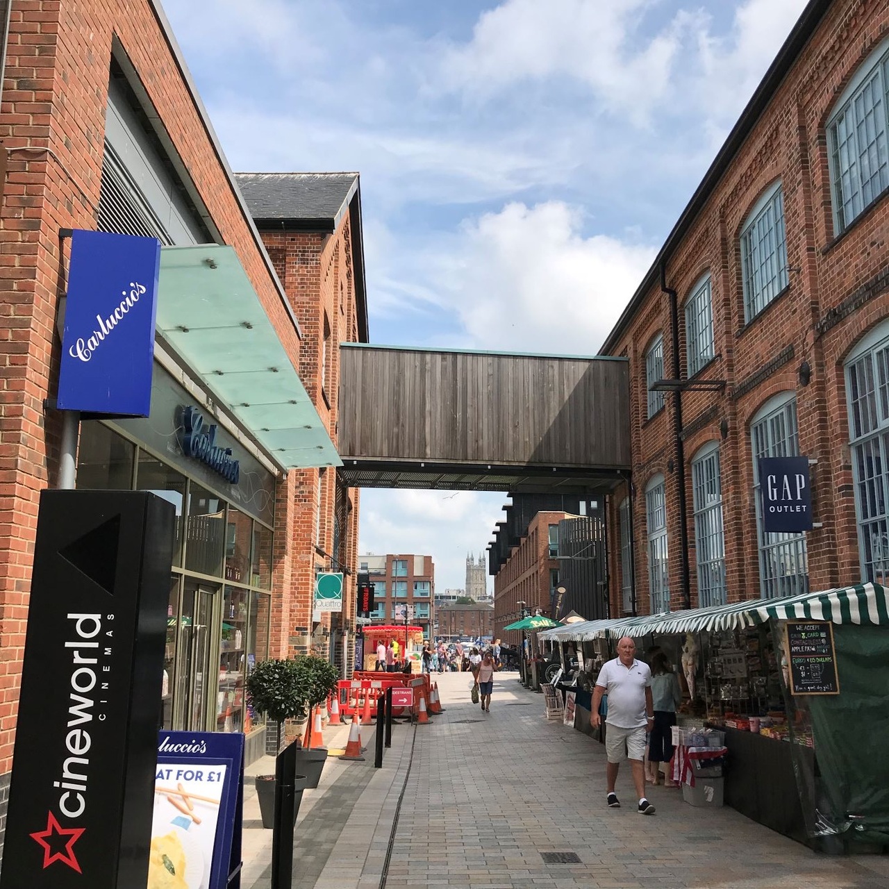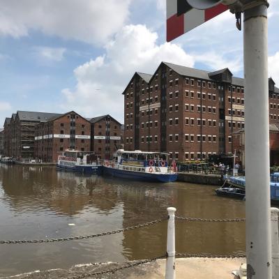 グロスターの観光案内は中心The Cross からサウスゲートストリートに入ったところにある。そのまま行くと、再開発で新しく生まれ変わったグロスター・ドックに行き着く。グロスター運河博物館や、その裏手からはボートでの観光ができる。また、新しいショッピングモールが完成し、休日は大いに賑わっている。