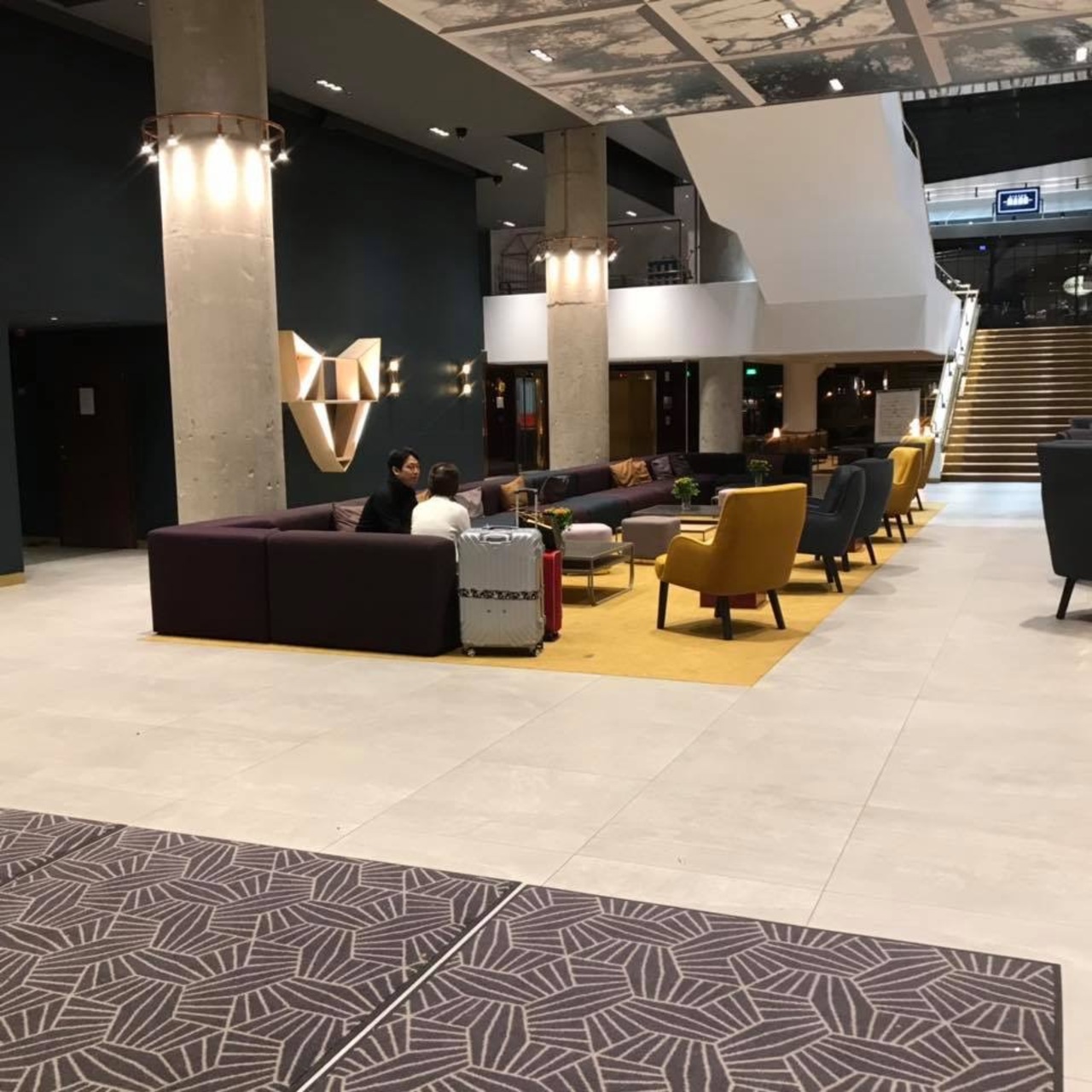 外観は特に奇抜さもないビルですがインテリアは北欧スタイルでサウナやプールがあります。- 旅行時期