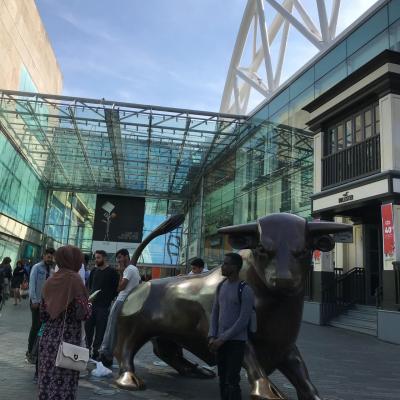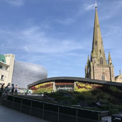 イギリス第二の都市、バーミンガム。ニュー・ストリート駅はロンドンのユーストン駅など多くの便が発着する。この駅を中心に再開発が進み近代的なビルと古い建物が混在する街だ。もっともにぎやかなエリアはニュー・ストリート。東端に雄牛の像があり、観光客が写真撮影している。そばに巨大なブル・リング・ショッピングセンターがある。側には13世紀に建てられた教会のレプリカが建っている。隣にはムーア・ストリート駅があり、こちらはかなり古い鉄道駅で近郊へ走っている。