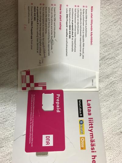 このSIMカードぎフィンランドは安い。SIMカード会社が数社あるからだ。今回はDNA社の4Gを購入。なんと日本円にして517円程。