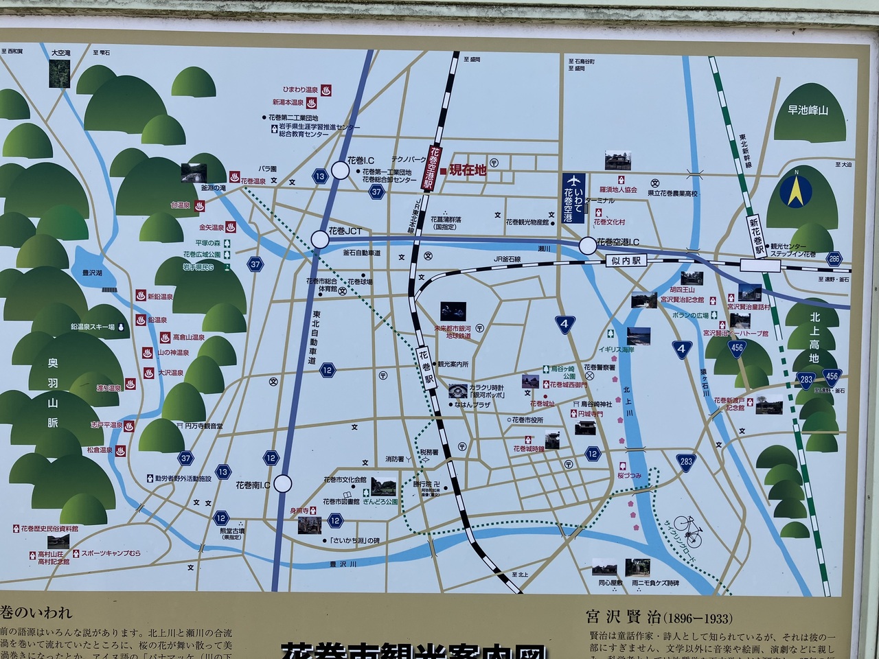 岩手県道13号線沿いにあります。2020年の夏にオープンしたので建物はまだ新しいです。周りは平地です。何も特徴ある建物がなく、畑の中という感じ。愛称からして、近くに宮沢賢治童話村と高村光太郎記念館があるようでしたが時間の関係で行けませんでした。
