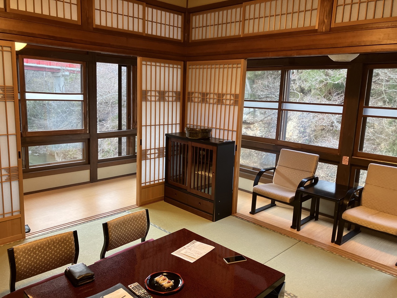 部屋は3階の和室角部屋。かなり古い建物なのですが室内はきれいにリフォームされています。見晴らしが良く部屋が広々と見えました。トイレは共同でしたが、部屋の隣で、他に宿泊客がなかったので全く問題はありませんでした。食事はなかなか良かったです。