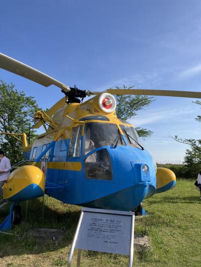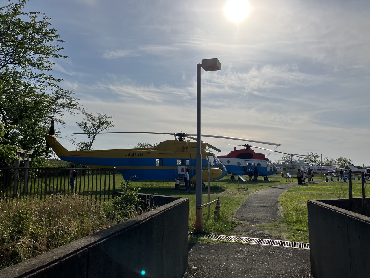 夕方近かったので駐車場は空いていました。何気に橋を渡ると、どどーんとYS-11機。それからアメリカ、ロシア、フランスなどのセスナ機、小型機、ヘリコプターなどが展示されています。もちろんかなり昔の型ですが、小さな子供達が楽しそう。私は初めて見るので興味津々でした。