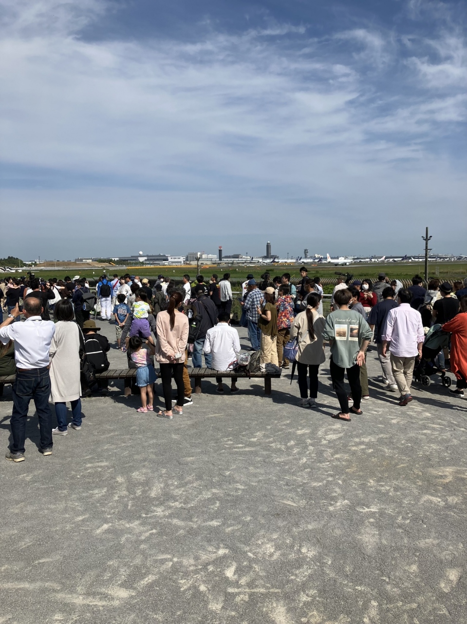 ゴールデンウィーク中だったためか、大勢の見物客がいました。中に専用アプリで次は◯X航空が来まーす、と教えてくれる若い方がいて、楽しく見ることが出来ました。