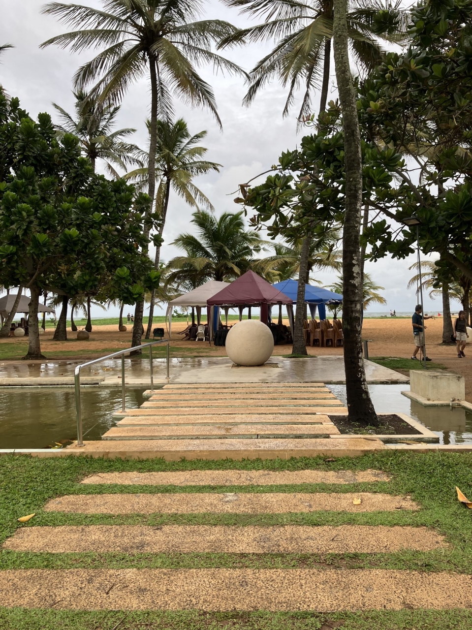 食事処は地下(ビーチレベル)ですが、虫除けのためか覆いがしてありレストランからは外がほとんど見えません。半分外なので冷房はありません。しかし食事内容は良かったです。従業員も親切で笑顔が良かったです。- 旅行時期